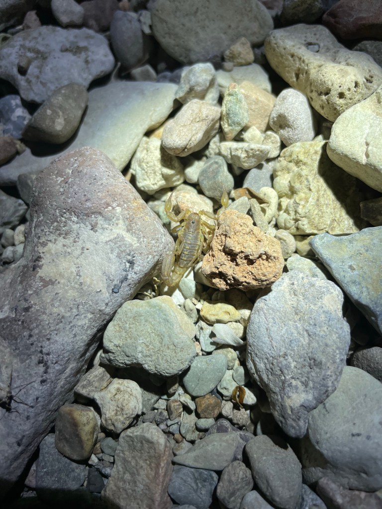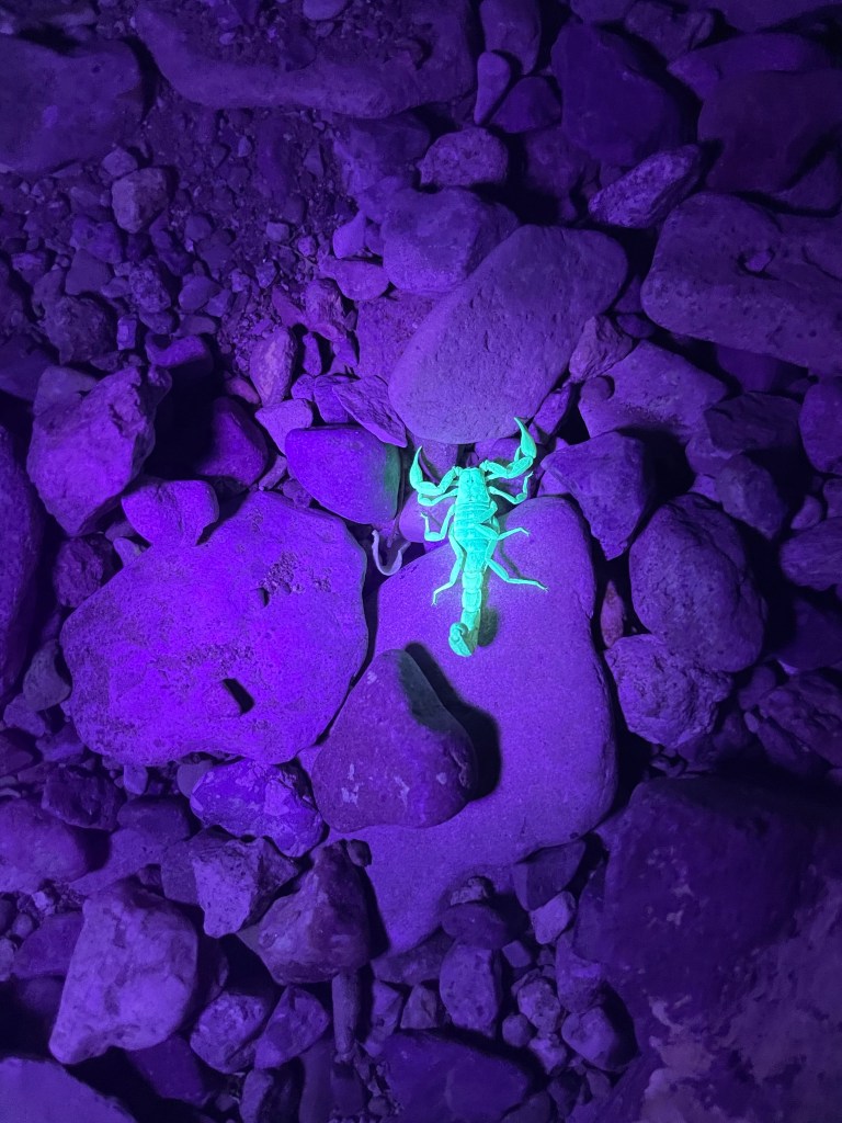 The next couple of nights were much less eventful with way less bugs. Over the next two days we did the Ross Maxwell scenic drive and saw the Mule Ears. We also did the Santa Elena Canyon hike which goes back into a canyon that follows the Rio Grande. We were enjoying the park so much that we added another two nights onto our trip. We explored the Mariscal Mines and attempted to do the Black Gap Jeep Trail. This Jeep trail was no joke and we didn’t want to put our little home at risk, so we only made it about 75% of the way. On another day we visited Terlingua Ghost Town about 25 minutes outside of the park. We walked around the abandoned old ruins, shopped int eh trading post and grabbed a coffee at a small cafe. Our last day in the park, we decided to just relax at the camp spot and spent it reading books, playing games, and ended the day with a downloaded movie. Before settling in to watch a movie, Jack took his UV light out and walked around the campsite looking for scorpions. He found one about 15 feet from our campsite and it was crazy cool to see!
