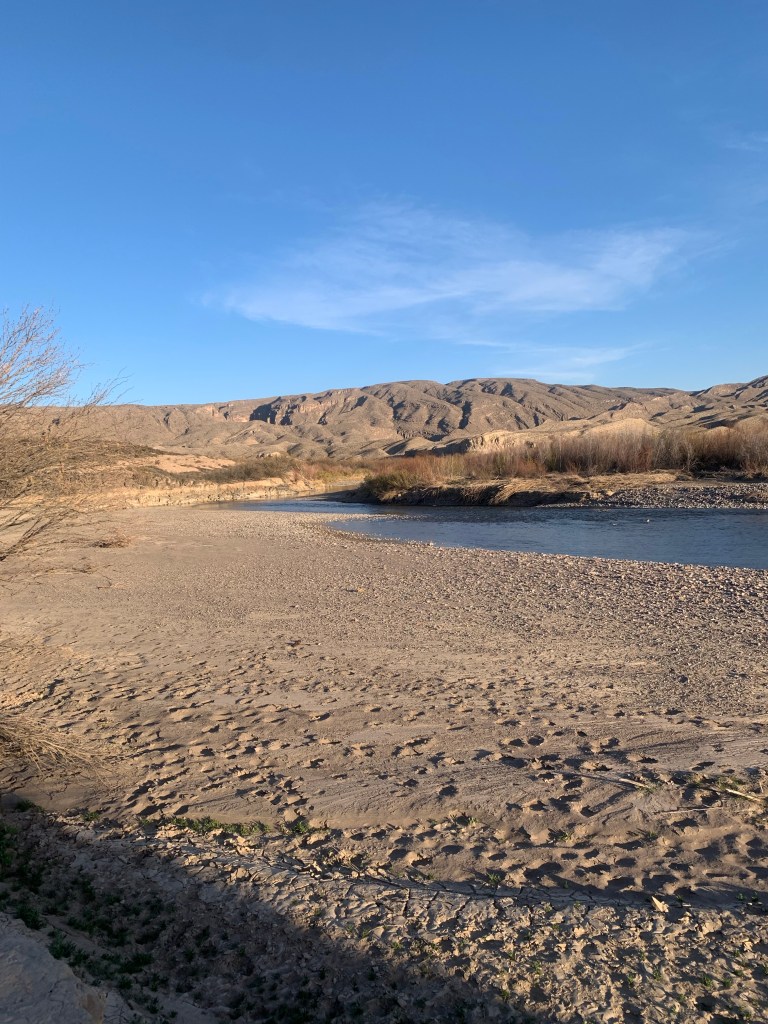Big Bend is a national park in southern Texas that has the Rio Grande River as the southern boarder and Mexico just beyond. Unlike the other national parks we have been to, we had to reserve dispersed backcountry campsites instead of just driving around and camping wherever there was a pull out. The rangers at the visitor center were so helpful and scheduled us campsites for the next three days. We got campsites along the Rio Grande River but were warned that the gnats were pretty bad. We didn’t think much about it since gnats are just annoying but don’t bite. This national park is HUGE. It took about three hours of off road driving to get to the first campsite along the river. When we pulled up we realized the rangers were not exaggerating about the gnats. Within five minutes of having the car in parked, the entire hood was covered in the small black bugs. We tried to get out and set up but were instantly attacked. Although they didn’t bite, they flew into our ears, noses and clothes. Within 10 minutes we were back in the car and trying to figure out what to do. The bugs were small enough that they would be able to get through our mesh tent windows so we were hesitant to set up the tent. Since all campsites were reservation only, we couldn’t just move to another camp spot, so we tried to drive far enough to get into cell service and look up what spots were available, but after an hour of driving and the sun setting we realized we were just going to have to make it work. We turned around and pulled up back up to the campsite about two hours after the sun went down. Luckily the gnats were not as bad in the dark so we set up the tent and went straight to bed. As soon as the sun rose, we were up and packing up camp. We decided we needed to go back to the visitor center and change our next two nights of campsites to ones away from the river.